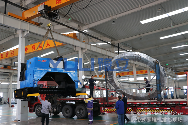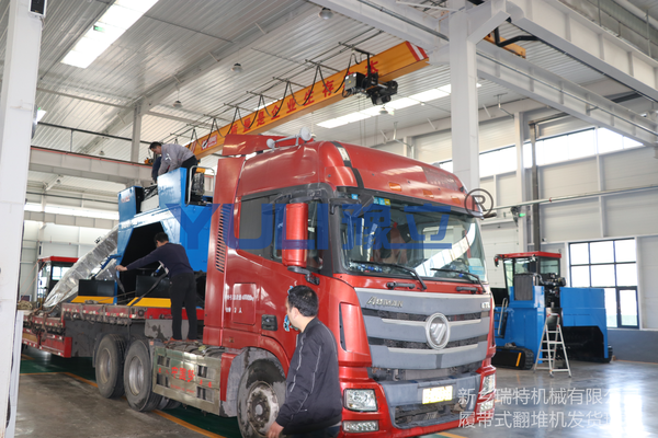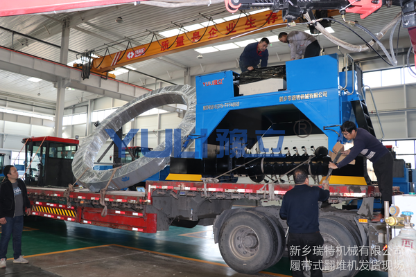 3月9日上午,新鄉(xiāng)瑞特機(jī)械機(jī)械有限公司生產(chǎn)的豫立牌履帶式翻堆機(jī)裝車發(fā)貨。