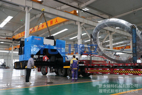 瑞特機(jī)械發(fā)往廣西梧州的履帶式翻堆機(jī)裝車現(xiàn)場(chǎng)